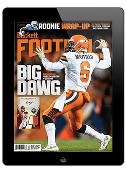 Beckett Football is a monthly collectibles publication that comes loaded with current pricing on recent trading card releases, popular sets from the past, and timely coverage of the latest football-related collecting trends.